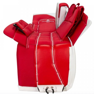 Now that you have your base size, you're set to try on some gear! Remember to bring your skates, knee pads, and pants to make sure it all integrates together nicely. Put the pads on so you are comfortable with the strapping. With your skates on, bring your feet together so the pads stand straight up - just like the old school stand up goalies. The pads should not come past your hips, and ideally sit roughly mid/upper thigh. A growing goalie can get away with a slightly taller pad, but they should still not surpass the hips. If it interferes with skating or movements, stick with an appropriate sized pad.